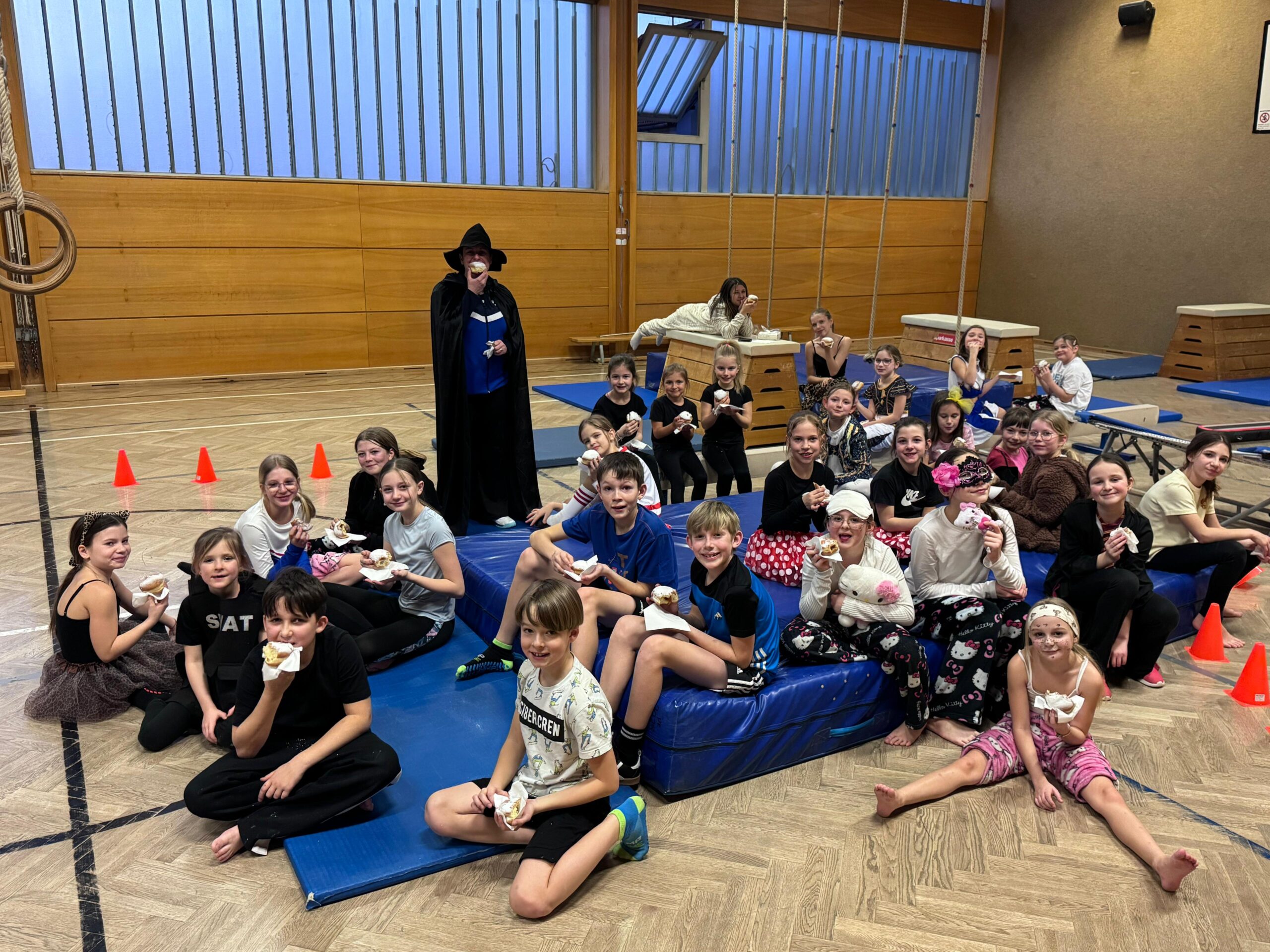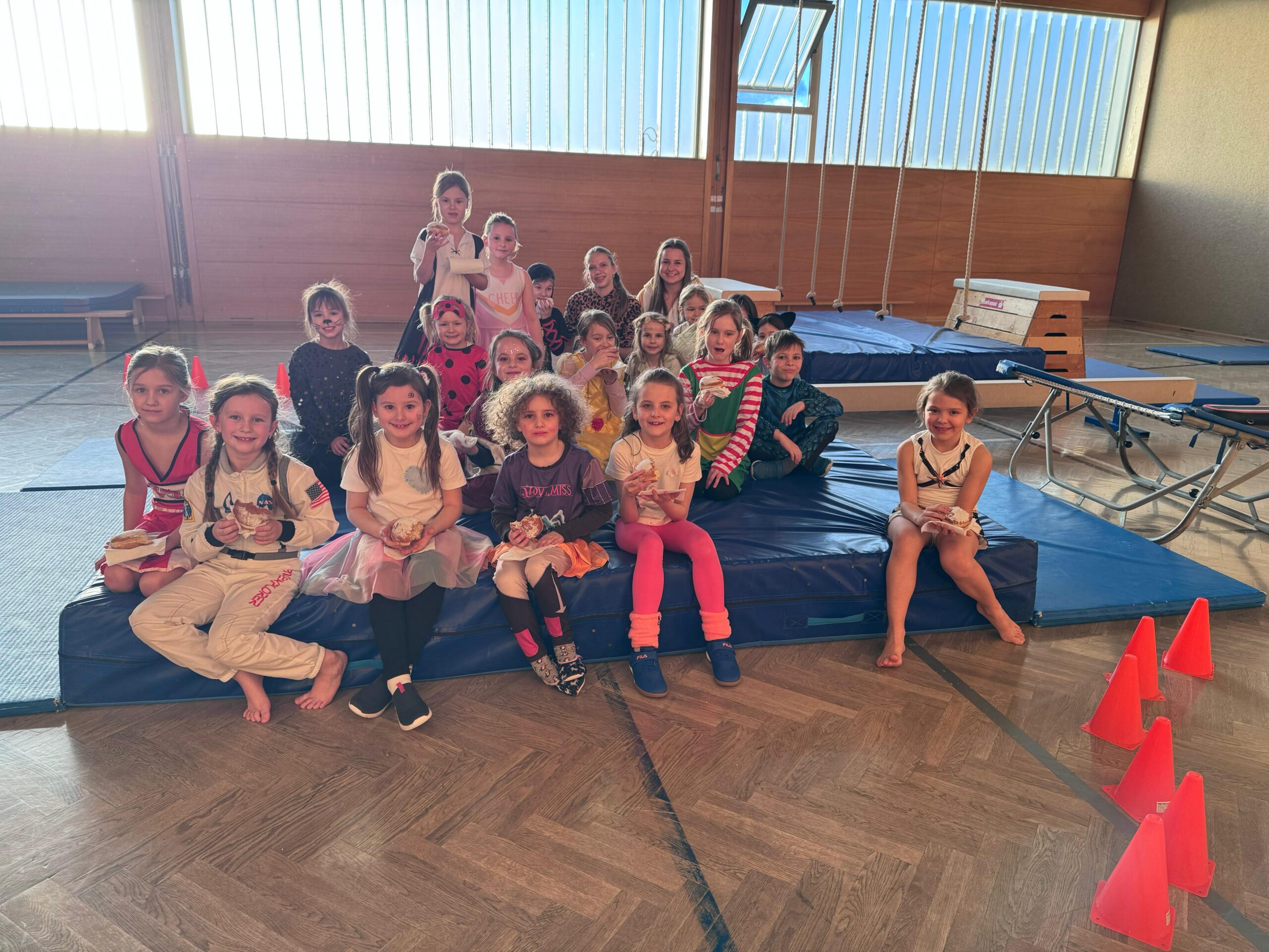 Die Kinder zeigten sich wieder in ihre tollsten Kostümen und konnten in unseren Turnstunden herumtoben. Wir hoffen, dass ihr Spaß hattet und euch die leckeren Krapfen schmeckten!