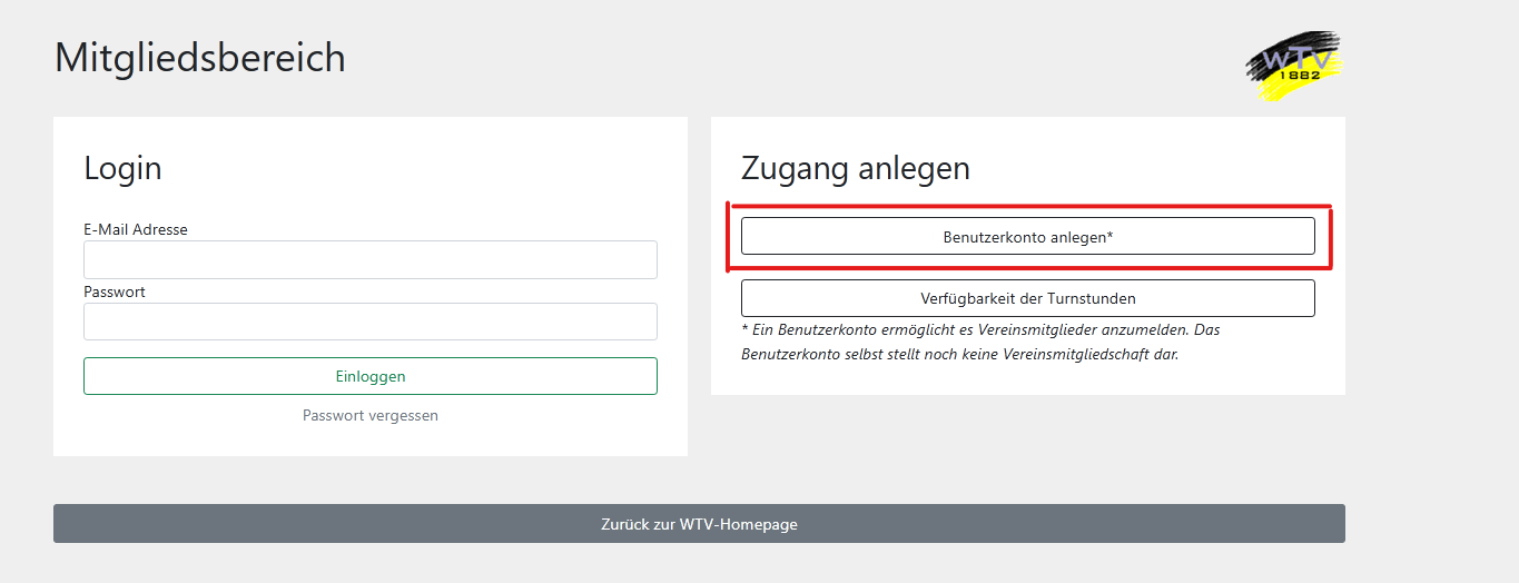 Sollte die gewünschte Turnstunde frei sein, können Sie sich ein Benutzerkonto erstellen und ein Mitglied hinzufügen.